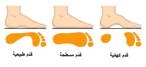 القدم الجوفاء: قوس القدم مرتفع وثابت ولا يهبط مع الوقوف.